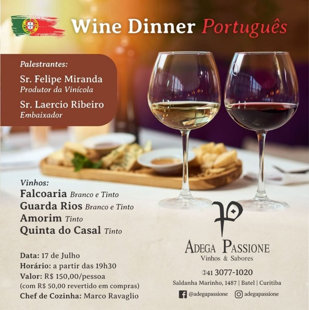 A Adega Passione, em Curitiba, é a anfitriã de jantar harmonizado com vinhos do Alentejo e do Tejo dos parceiros da Conceito Português – Quinta do Casal Branco, Monte da Ravasqueira e José Maria da Fonseca.