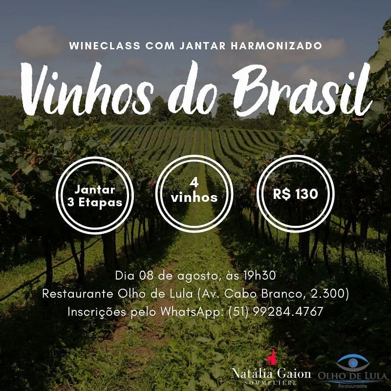 E além da wineclass sobre as regiões, terroir, castas e os tipos de vinhos que são elaborados por aqui, haverá degustação de 4 rótulos harmonizados com um jantar em 3 etapas, preparado pelos profissionais do @olhodelularest! 😍